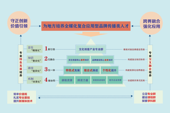 员工开办文化创意人才培养实验班,探索文化创意人才跨学科、跨专业培养。目前员工建设省级文化产业品牌建设与传播教学团队1个,省级课程思政教学名师及团队1个,建设省级课程思政示范课程1门。建设国家级一流本科课程1门,省级一流课程4门;建设省级虚拟仿真实验教学中心1个、省级实验教学示范中心1个、省级校企合作实践教学基地1个,建设品牌文化、规范语言、新媒体3个创新工作室。