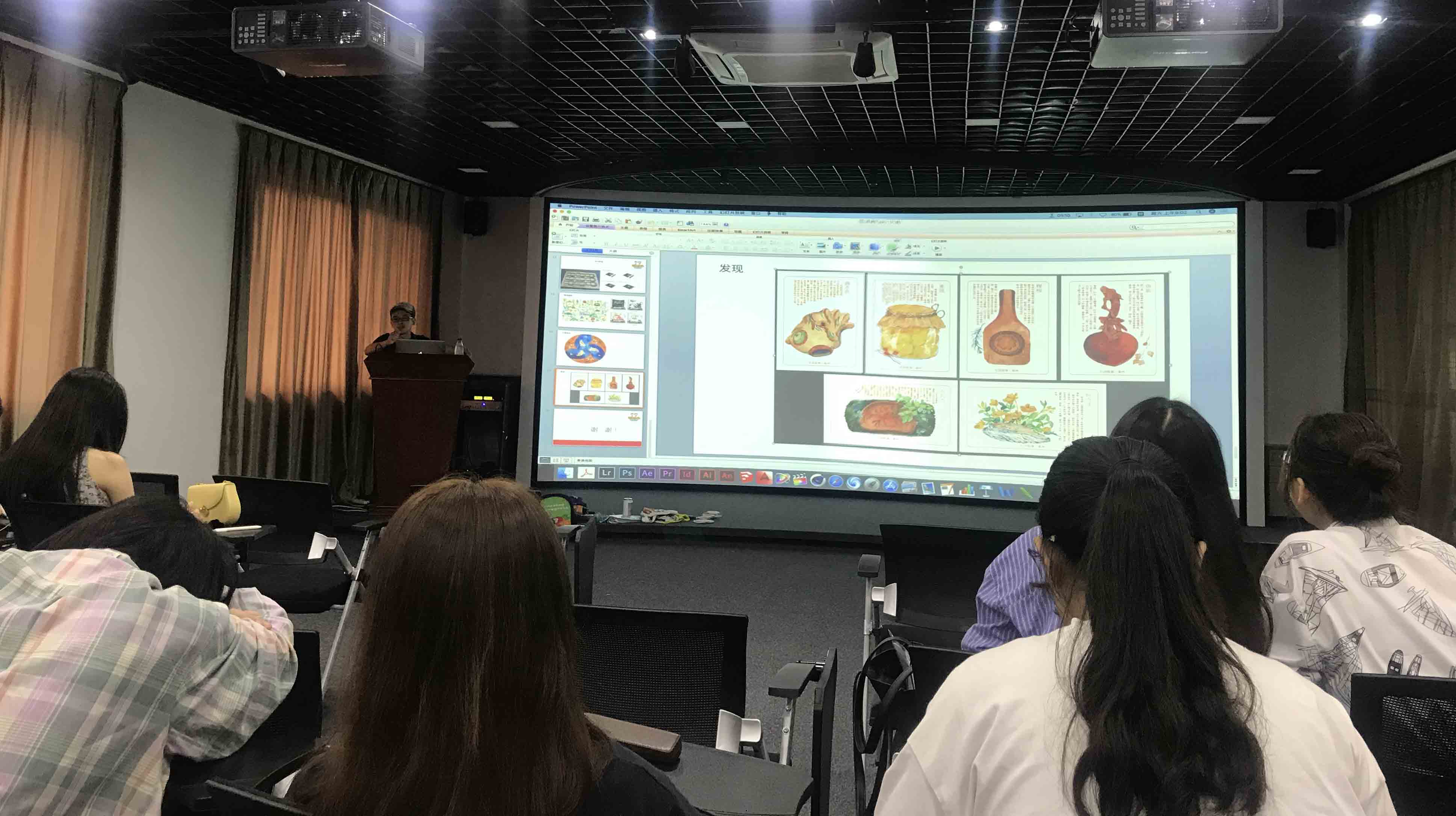 近日,悠然见旅游文化有限公司的设计总监邓才炳老师为2017级与2016级文创班员工讲授“文创产品设计”专题课程。