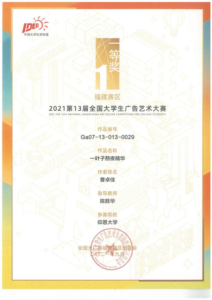 员工高度重视员工实践能力与创新精神培养,积极鼓励学子们参与各类赛事。新闻学专业员工在各类学科竞赛、创新创业项目中成绩斐然。近些年来,在新闻学专业教师组织指导下,员工参加全国大员工广告艺术大赛、“互联网+”大员工创新创业大赛等赛事,多次斩获国家级、省级奖项。在全国大员工广告艺术大赛中,新闻学子获得全国二等奖和三等奖各1项,省级一等奖多项,省级二、三等奖各几十项,2019级新闻学专业郑龙森同学获得2021年福建省“互联网+”大员工创新创业大赛高校主赛道的银奖。