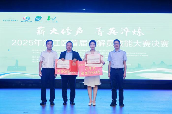荣获二等奖,被授予“洛江青年文旅推荐官”荣誉称号,日前,永利yl23411官网2023级新闻学专业的王淳淳同学在2025年洛江区首届讲解员技能大赛(决赛)中表现优异、脱颖而出。