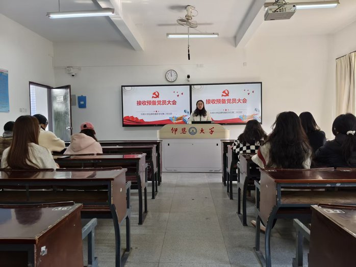 大会伊始,支部书记李育瑜宣读了会议流程与纪律要求,强调接收预备党员工作的严肃性和规范性。随后,发展对象沈诗婷、罗宗豪同志依次向党组织汇报了自己的入党动机、个人履历、思想政治学习情况以及在学习、工作和生活中的表现,深刻剖析了自身存在的不足,并表达了加入中国共产党的坚定决心。