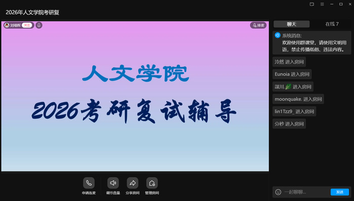 辅导会最后,同学们围绕复试备考中的困惑、线上面试细节等问题积极提问,刘教授不仅结合专业理论给出了深度分析,还结合历年复试经验,提供了合适的实战建议,有效地缓解了同学们的备考焦虑。