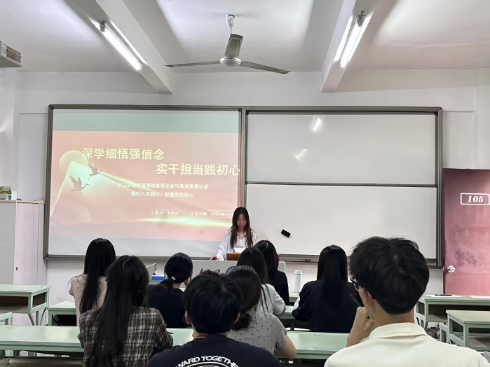 为推动员工党员筑牢思想根基,在知行合一中彰显党员本色,中国语言文学系员工第二党支部联合普照书院于4月15日下午在吉龙楼105开展“深学细悟强信念,实干担当践初心”主题党日活动。此次党日活动由支部书记谢云主持,党员关欣怡、陈蕾同志主讲。