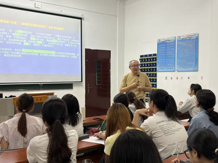 本次讲座围绕鲁迅文采评价范式、理论来源承继、创造性转换三大核心内容展开。以《铸剑》为典型案例,深入剖析鲁迅“文采”观的落地实践。从黑白红三色构筑的形美、声韵铿锵的音美,到沉郁深刻的意美,结合文本细节与艺术手法,展现传统文论在现代创作中的新生与突破,帮助同学们理解古今融通的创作路径。针对文学研究与专业学习,樊教授强调,要坚持立足传统、融合新知,在研读经典中夯实理论功底,在文本分析中提升审美能力,以严谨治学态度开展文学研究与创作。