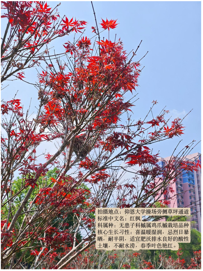 本次活动以春日树木观察为载体,将节气文化、自然科普与美育实践有机结合,分为宣传招募、任务执行、作品提交、审核积分四个阶段。活动期间,同学们走进校园各处,完成5种不同树木的原创实拍,规范标注拍摄地点、树木名称、科属种及生长习性,并按时提交摄影作品。主办方对作品原创性、信息准确性进行严格审核,为合格参与者认定美育积分。